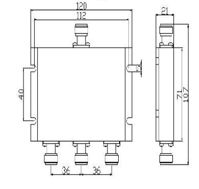 Frequency Range(MHz) 380~470 Insertion Loss(dB) ≤5.5 Isolation(dB) ≥18 VSWR ≤1.3 Power Handling(W) 50 Connectors N-F,50Ω Operating Temperature(℃) -25~+65