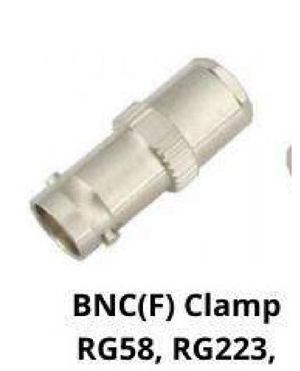 Key Features - Connector Type: BNC, female, straight - Attachment Method: Clamp/solder - Cable Compatibility: RG58, RG223 (both 50-ohm cables with similar outer diameters) - Impedance: 50 ohms - Frequency Range: DC to 4 GHz - Materials: Nickel-plated brass body, gold-plated center contact, PTFE dielectric