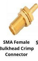 Type: SMA Female (Jack) bulkhead crimp Mounting: Bulkhead/panel mount (requires 1/4"-36 threaded hole) Cable Compatibility: Works with RG-58, RG-141, RG-174, and similar (3.5-5mm OD) Frequency Range: DC-18 GHz Impedance: 50Ω VSWR: <1.30 typical Materials: Body: Nickel-plated brass Center contact: Gold-plated beryllium copper Dielectric: PTFE